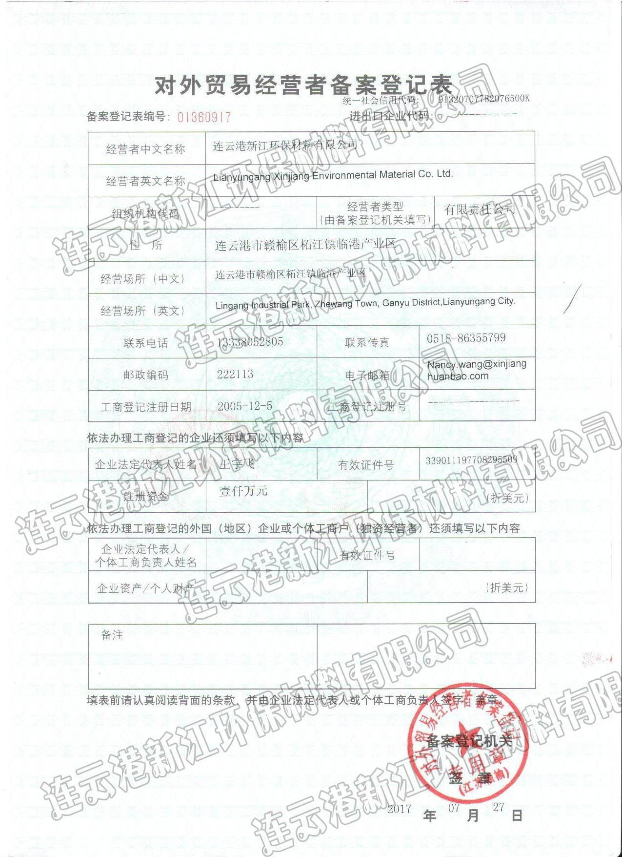 出口外貿登記證