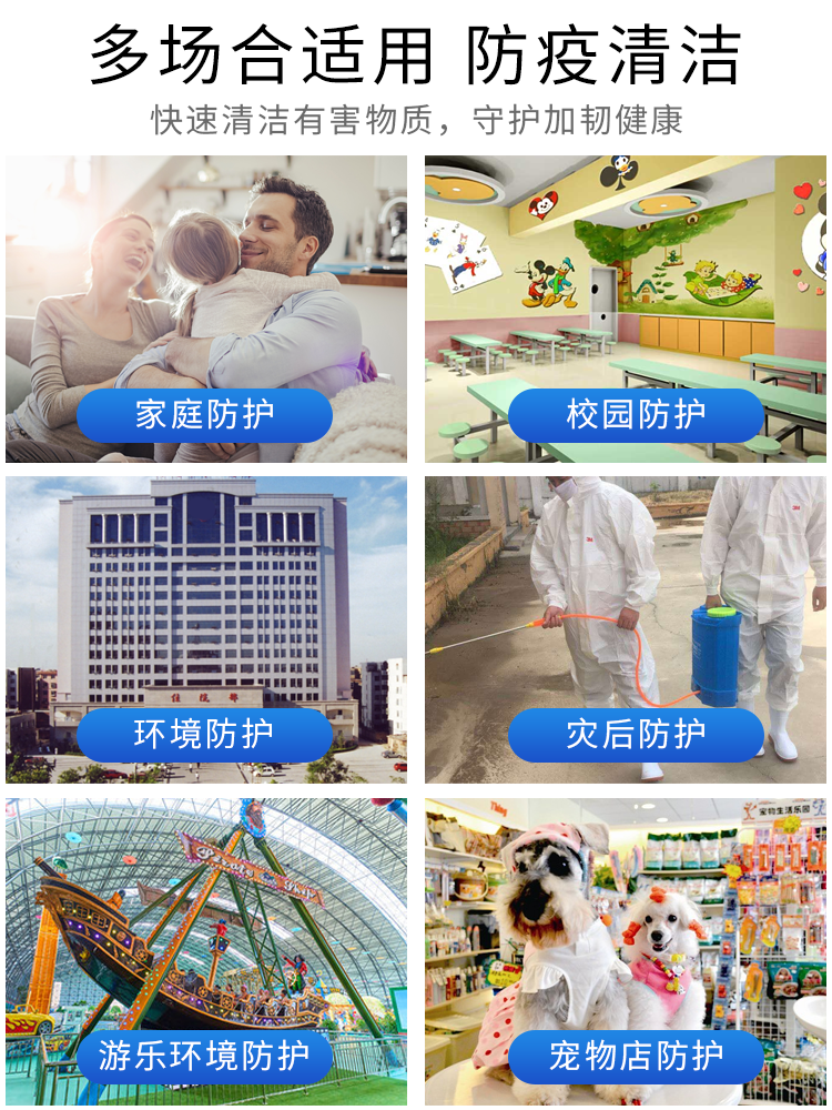 2、家庭物體表麵消毒;家庭包括(如衣物、鞋襪、床單、被罩、室內空氣、家具、地麵、家用電器)等消毒;
