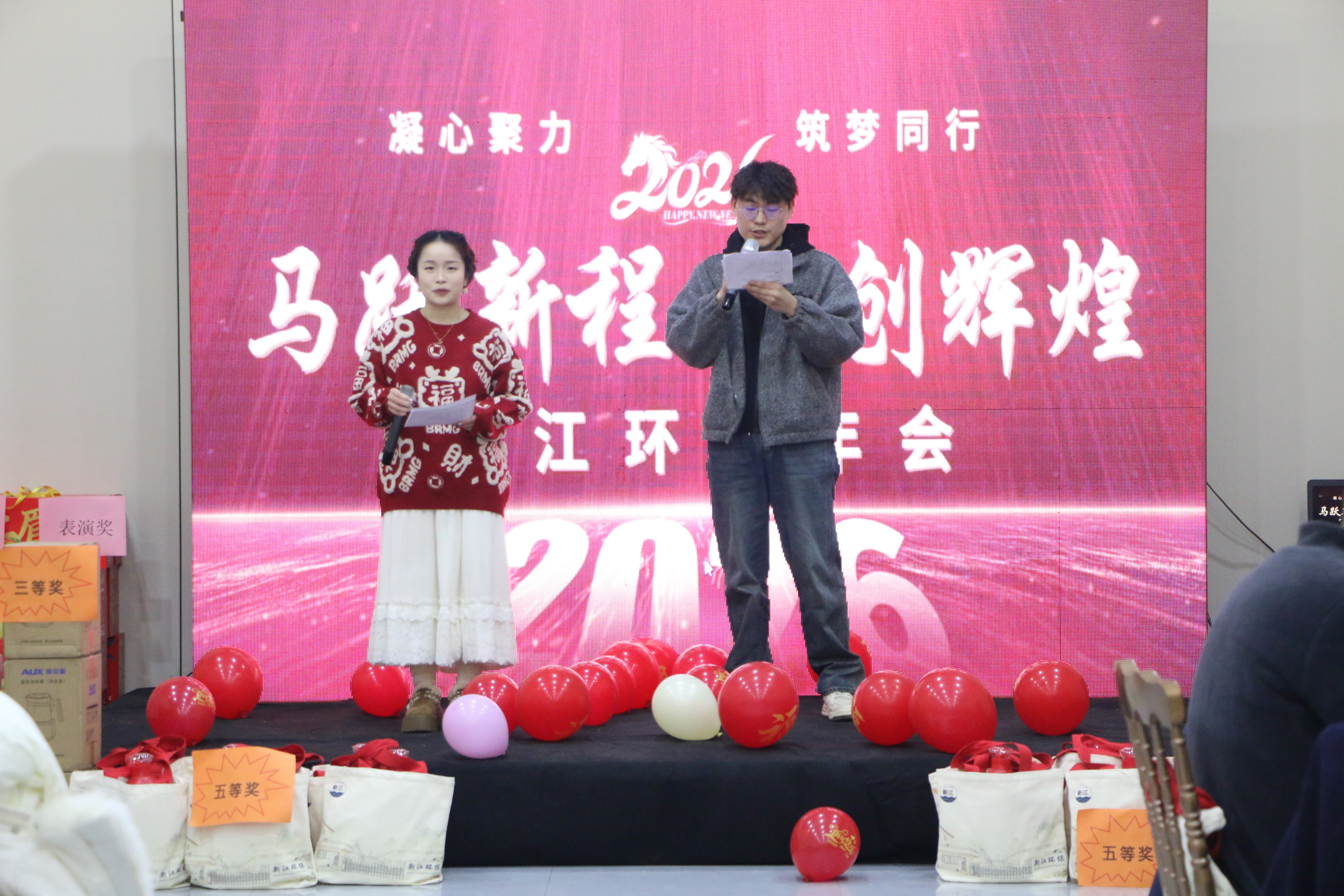 燈光璀璨映初心,歡聲笑語慶團圓!連雲港新江環保材料有限公司年度盛典在熱烈氛圍中圓滿落幕。作為深耕環保材料領域、踐行綠色發展使命的企業,本次年會不僅是對全體員工過去一年深耕水處理環保事業的致敬與嘉獎,更以 “高中獎率 + 硬核福利” 點燃全場熱情 ——70% 的員工成功抽中各類大獎,品牌智能彩電、綠色環保家電、豐厚現金紅包等好禮輪番派送,現場歡呼聲、喝彩聲此起彼伏,每個人的臉上都洋溢著幸福與自豪的笑容。